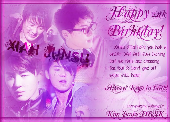 Well, December 15th is his real birthday, but he was registered on January 1st. So, yeah, I'll make it today. But yeah, I just wanted to say "HAPPY BIRTHDAY JUNSU OPPA!" I made a poster for him so yup, hope you guys like it! ^_^